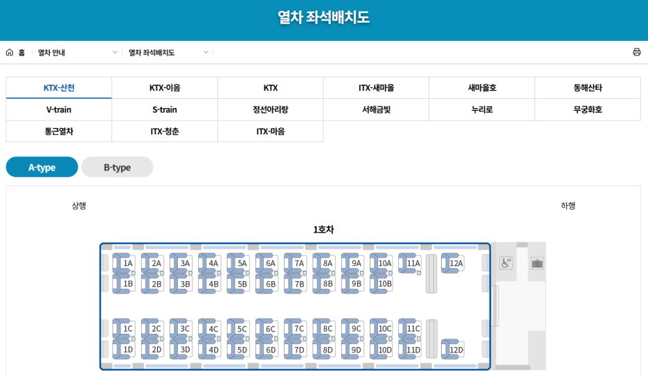 - 순/역방향 좌석 선택 가능